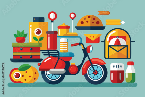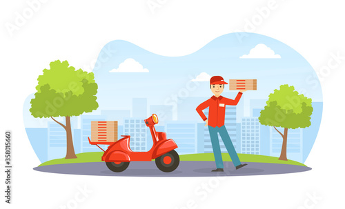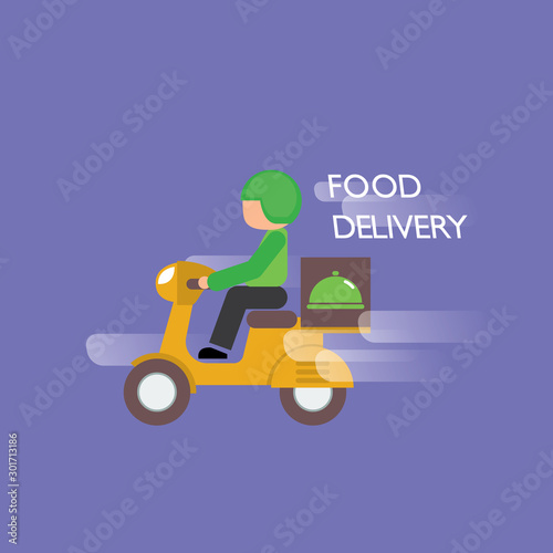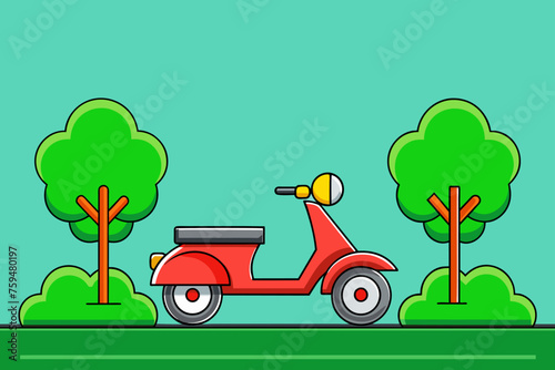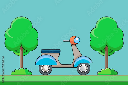 Vector illustration of young man riding scooter. Motorcycle, motor scooter concept design element in flat style.