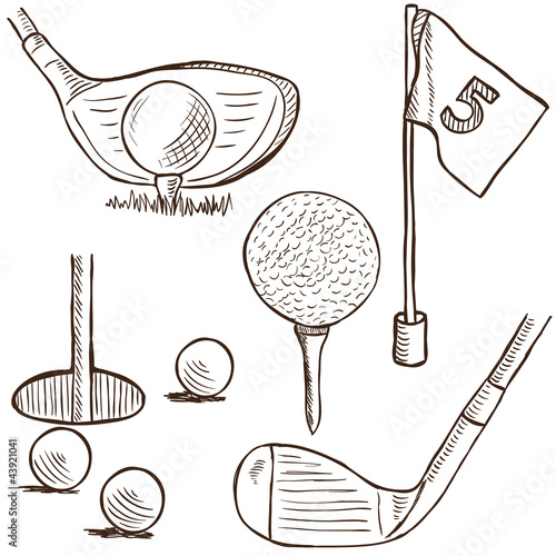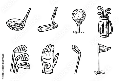 Golf icon set. Vector ink hand drawn illustration isolated on white background.