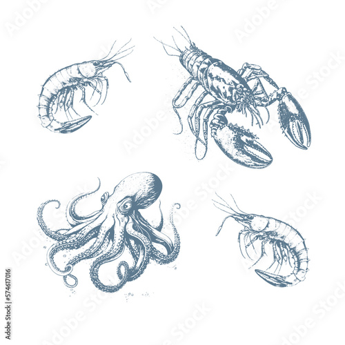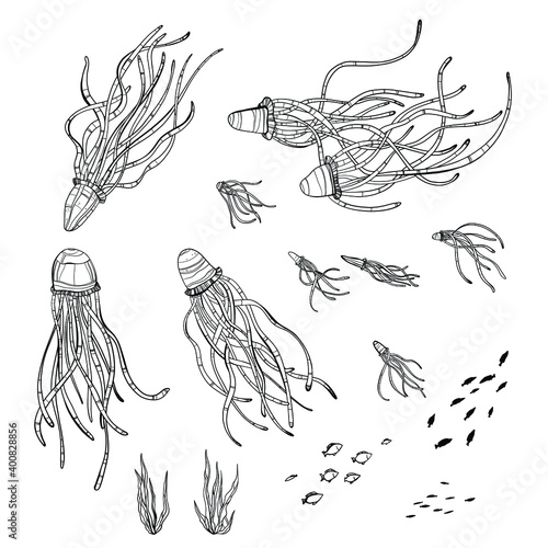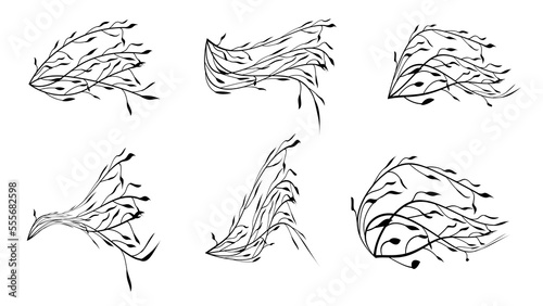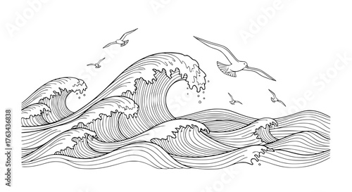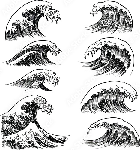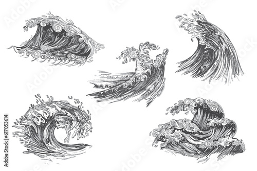 Waves set. Vector ink hand drawn illustration isolated on white background.