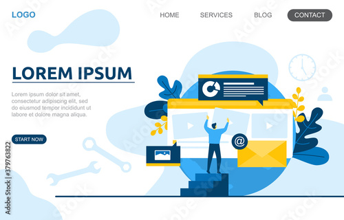 Insurance company landing page template. Vector flat style design concept for website and mobile site development. Health, business risk and auto insurance services.