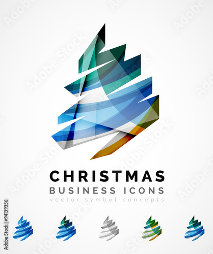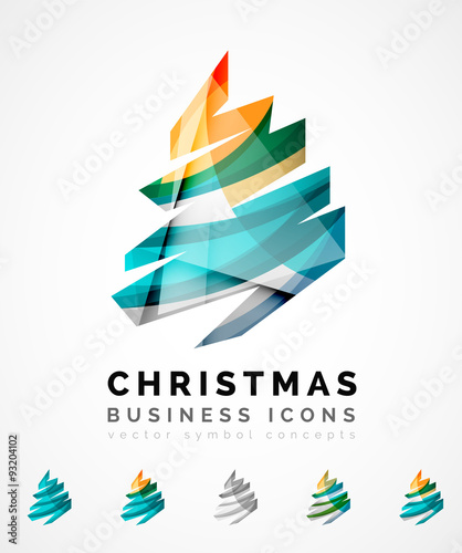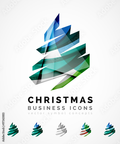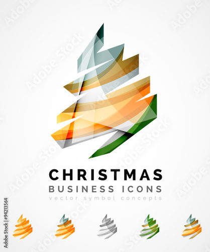 Layered paper cut snowflake, christmas tree, deer and Santa Claus in sleigh with reindeers silhouettes, vector illustration isolated on white background. Merry Christmas and Happy New Year symbol set.