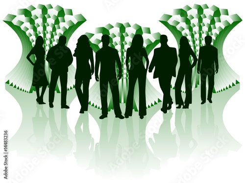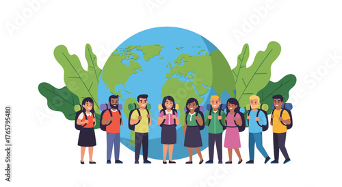 Vector layered paper cut style happy family walking in city park. Father, mother with two kids holding hands enjoying outdoor walking together. Happy family weekend concept for poster, banner etc.