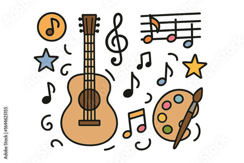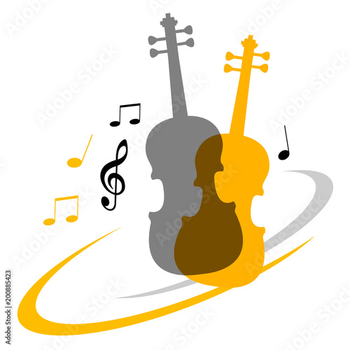 Vector layered paper cut style music background with violin musical instrument, music notes, treble clef and doves. Musical poster design template with copy space for classical music concert.