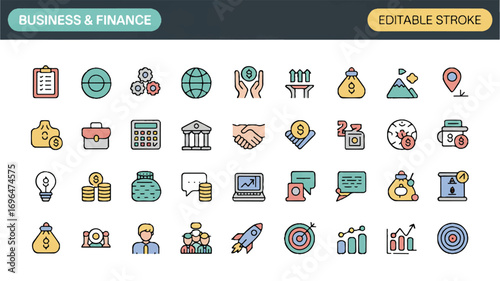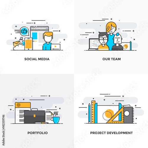 Content management and services template set. Vector thin line art flat style design elements, icons for website banners and printed materials.