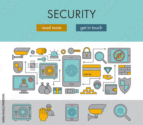 Document restore and internet security template set. Vector thin line art flat style design elements, icons for website banners and printed materials.