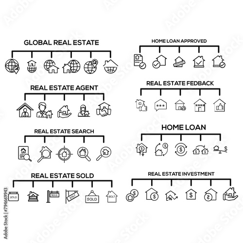 Download and protection template set. Vector thin line art flat style design elements, icons for website banners and printed materials.
