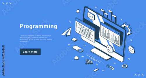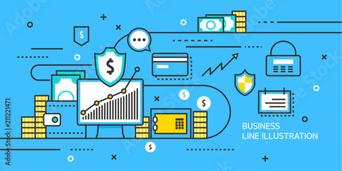 Download and protection template set. Vector thin line art flat style design elements, icons for website banners and printed materials.