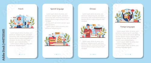 Vector set of vertical banners with Education apps, Online library, Creativity, Audio courses, Webinar website and mobile app templates. Modern thin line flat style design.