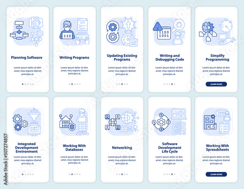 Vector set of vertical banners with Online medical support, Mobile medical apps, Neurology, Medical services, Ambulance website and mobile app templates. Modern thin line flat style design.