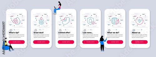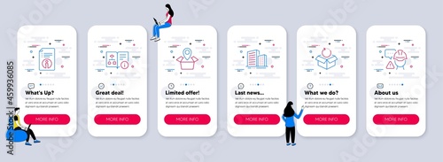 Vector set of mobile app onboarding screens. Dental equipment and services, Medical supplies, First aid, Infusion, Diagnostic web templates and banners. Thin line art flat icons for website menu.
