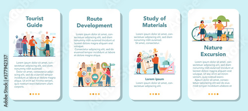 Vector set of mobile app onboarding screens. Doubledecker, Travel app, Baggage claim, Waiting room, Stamp, Pilot web templates and banners. Thin line art flat icons for website menu.