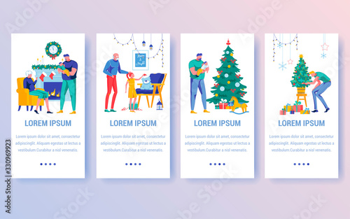 Vector set of mobile app onboarding screens. Amsterdam street, Mill, Bicycle, Berlage, Keukenhof, Tulip store web templates and banners. Thin line art flat icons for website menu.