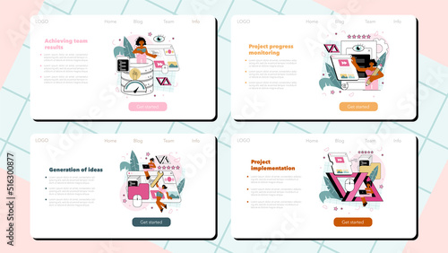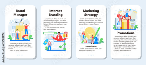 Vector set of mobile app onboarding screens. Online Study, Communication, Global Learning, Teaching, University, Students web templates and banners. Thin line art style design icons for website menu.