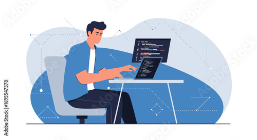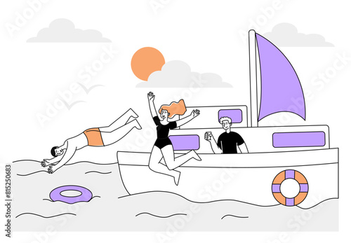 Vector man vip passenger of business class sleeping during aircraft travel illustration. Comfortable airplane interior. Time for leisure and relax during flight
