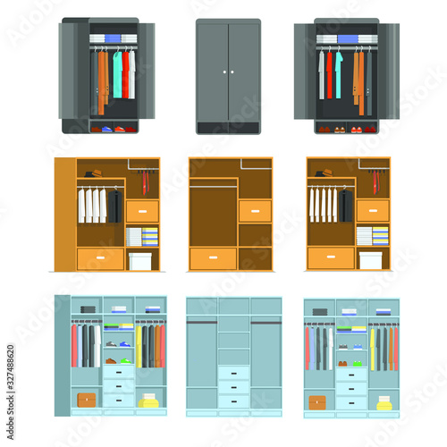 Vector top view illustration of one bedroom apartment with furniture. Modern detailed architectural plan of bedroom, bathroom and kitchen combined with dining room.