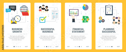 Vector set of vertical banners with Career, Contract, Portfolio, Growth, Strategy website templates. Modern thin line flat style design.