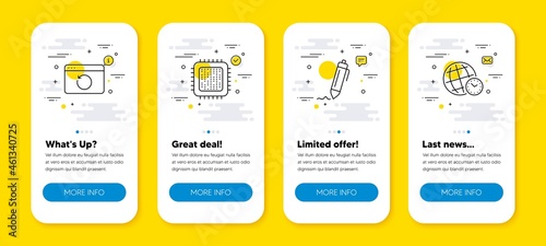 Vector set of vertical banners with Touchscreen, Printer, Mobile phone, Laptop, Camera website templates. Modern thin line flat style design.
