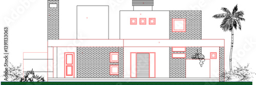 Vector top view illustration of modern two bedroom apartment. Detailed architectural plan of dining room combined with kitchen, bathroom, bedroom. Home interior with comfortable furniture.