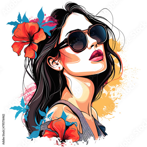 Vector of beautiful girl looking through the sign of heart made of fingers. Illustration of pretty girl making sign of heart by fingers. Colored vector of young woman with light blue hairs