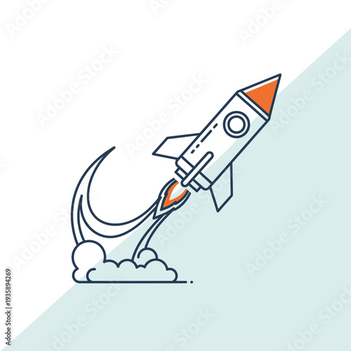 Vector origami rocket launch. Startup new business concept paper art style illustration.