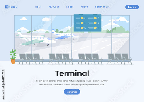 Air travel landing page website template. Vector paper cut illustration. Travelling by plane concept.
