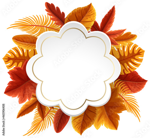 Vector paper cut autumn leaves and cloud shaped frame with space for text. Origami autumn frame template.