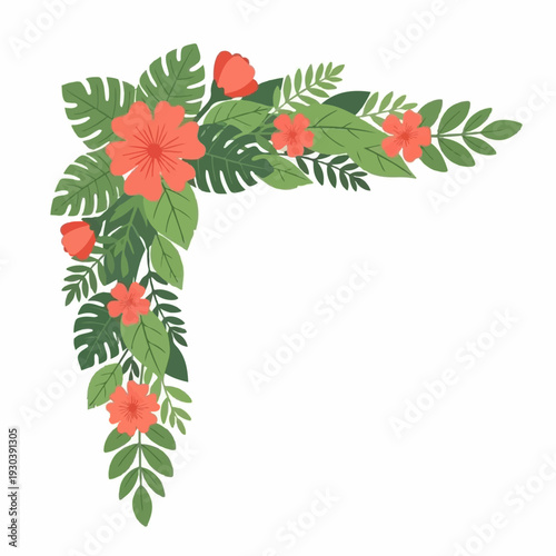 Portrait of beautiful young girl with tropical floral hair. Vector paper cut profile view illustration.