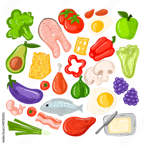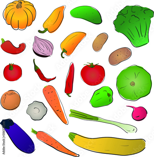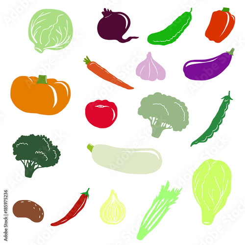 Vector paper cut craft style fresh vegetables and greens. Carrot, asparagus, beet, tomato, eggplant, cucumber, garlic, onion, pepper, celery broccoli peas. Natural organic food and healthy nutrition.