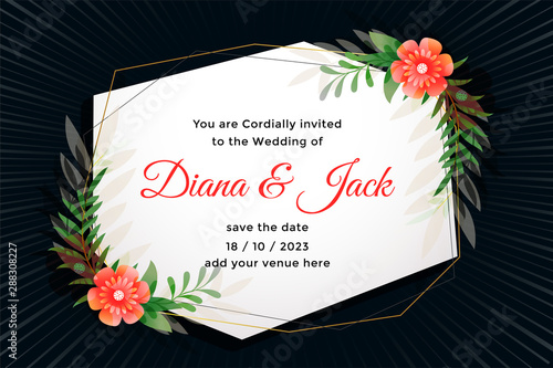 Envelope with tropical flowers. Vector paper cut tropical invitation card design template.
