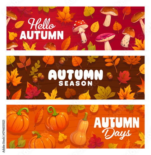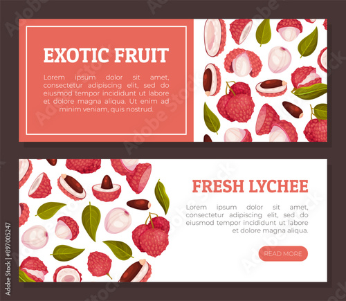 Vector set of fruit banners with paper cut ripe fresh yellow pear and purple plum fruits.