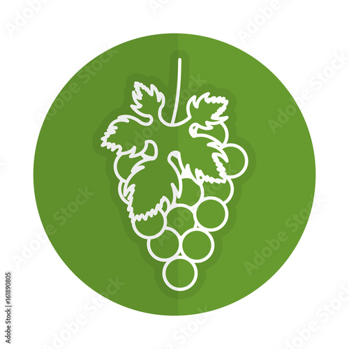 Vector paper cut bunch of grapes with leaf. Purple grape vine, vineyard landscape in round frame. Red wine label, emblem.