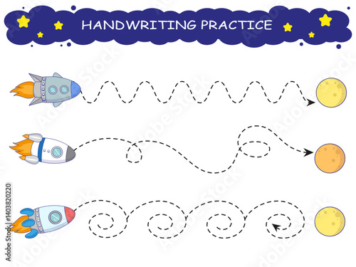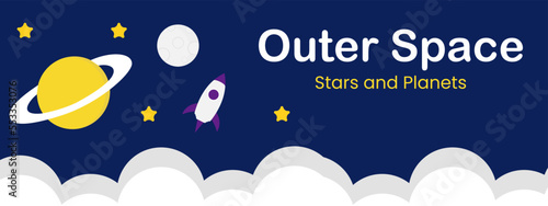 Road to space landing page website template. Vector paper cut rocket launch, sky, planets, stars. Space trip concept, paper art style.