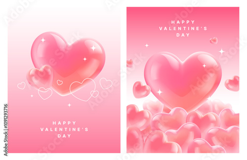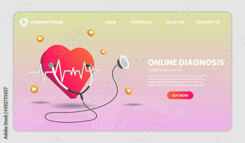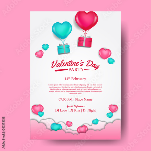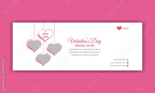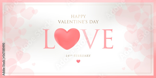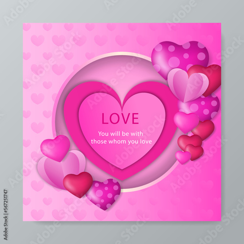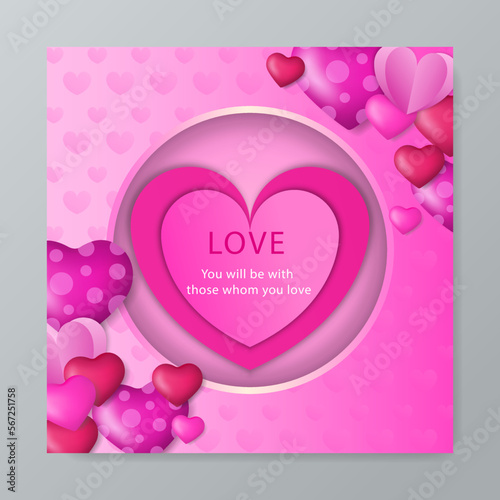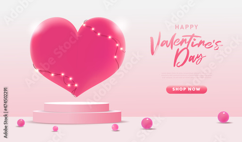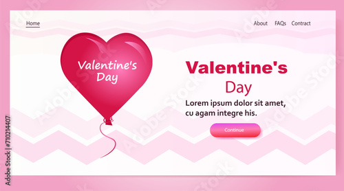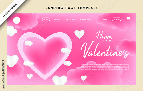 Happy Valentines Day landing page website template. Vector paper cut pink heart surrounded with pink roses.