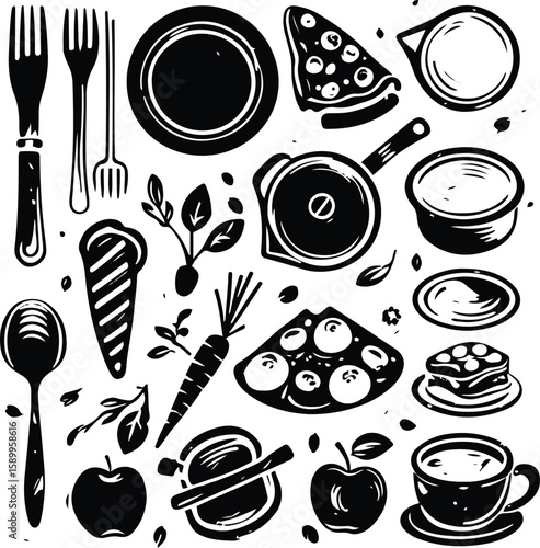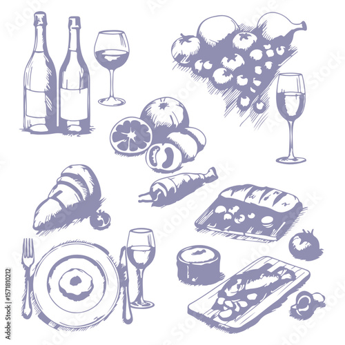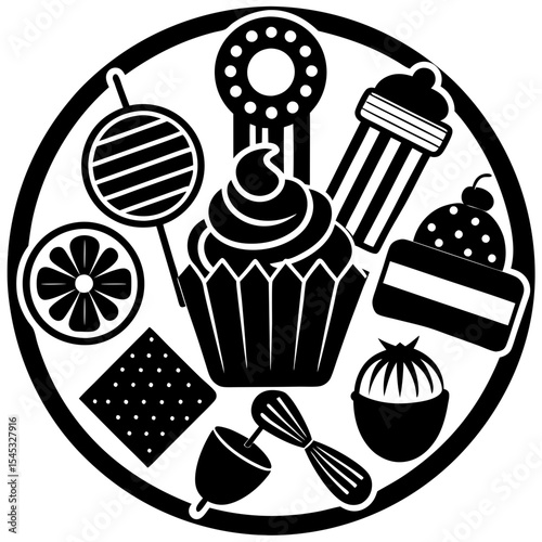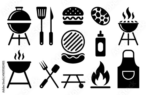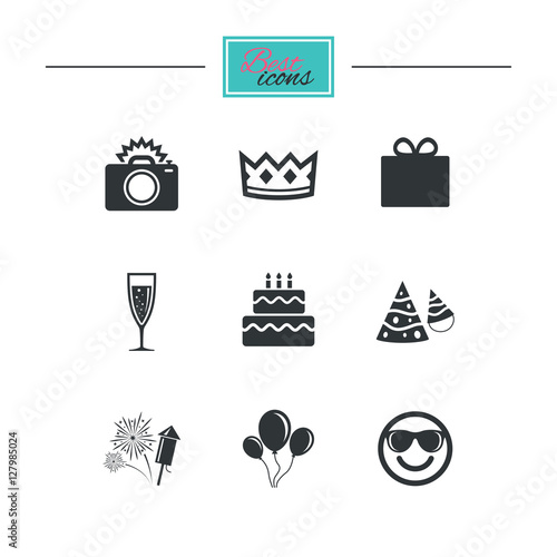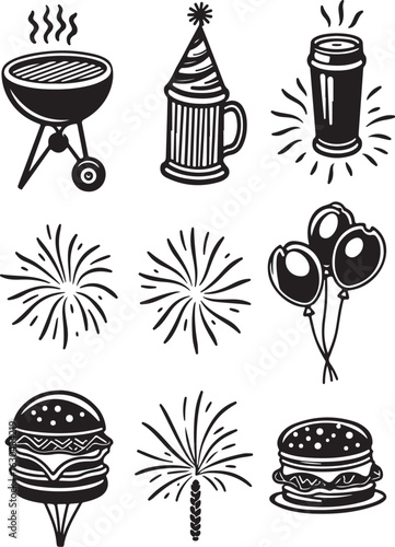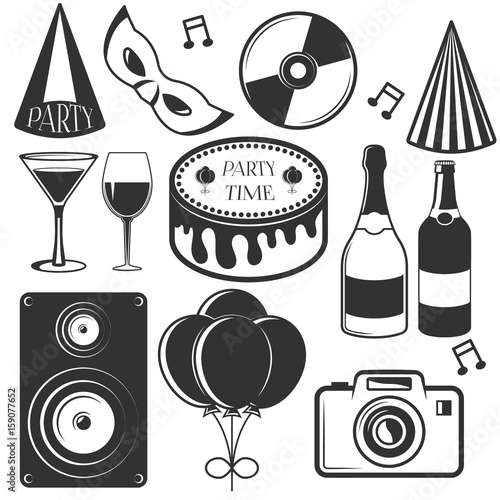 Vector party set of emblems, badges, stickers or banners. Design elements in vintage style. Black icons and logo isolated on white background.