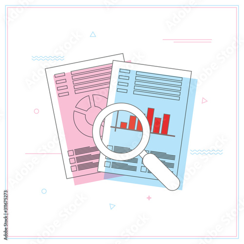 Vector patient medical card or vaccination certificate illustration with stethoscope, loupe and thermometer. Medicine, insurance and healthcare concept