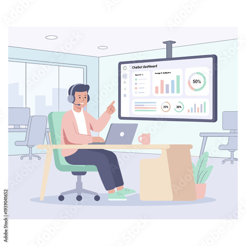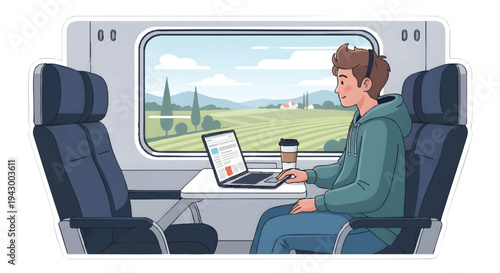 Vector people passengers watching movie on tv screen during flight illustration. In-flight entertainment concept. Inside plane, cabin of business or economy class