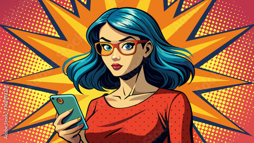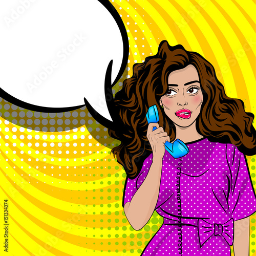 Vector illustration of beautiful woman with long glossy shiny hair. Sexy pin-up girl in retro pop art comic style.