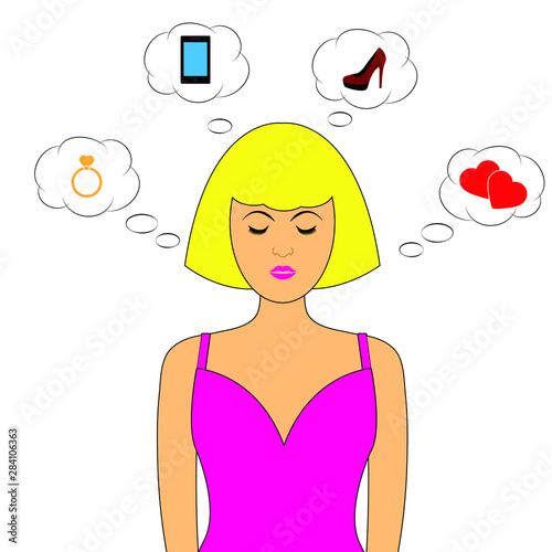 Vector illustration of beautiful young woman with open palm. Girl showing cloud with fidget spinner stress-relieving toy symbol in pop art retro comic book style.