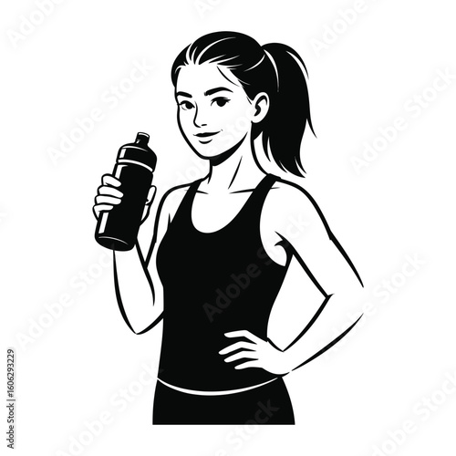 Vector illustration of fitness girl exercising with barbells. Beautiful sporty girl in retro pop art comic style.