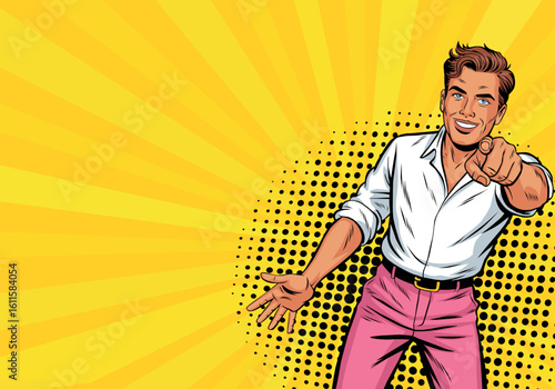 Vector illustration of pretty woman with curly afro hairstyle, speech bubble. African american woman with bag in retro pop art comic style.