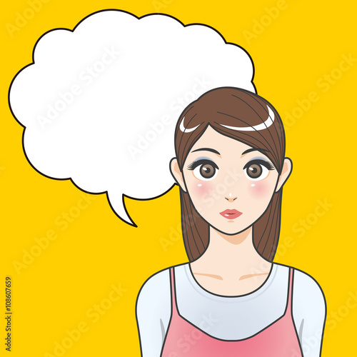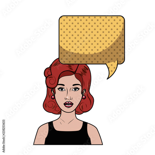 Vector illustration of beautiful african american flight attendant, speech bubble. Stewardess in retro pop art comic style.