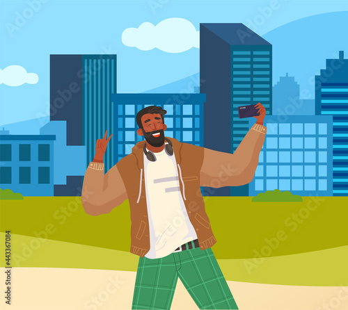 Vector illustration of businessman holding laptop. Gadgets modern technology concept in retro pop art comic style.