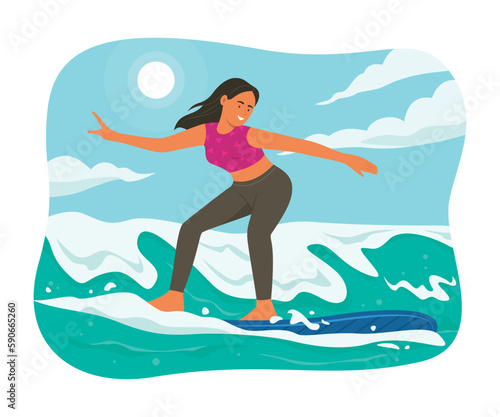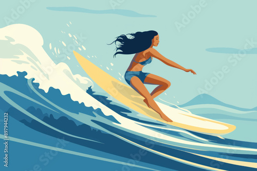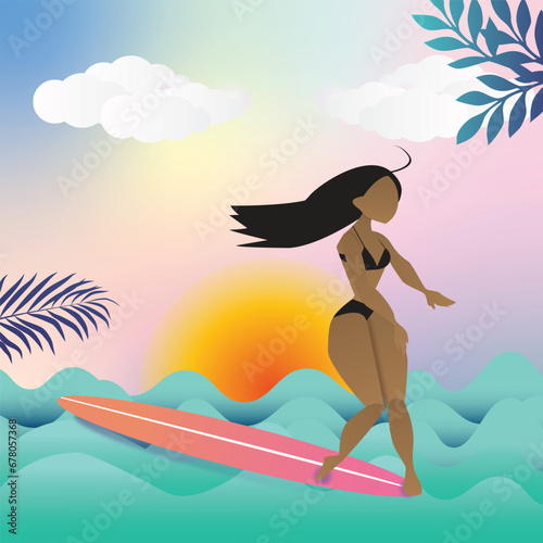 Vector illustration of businesswoman dreaming about holiday at the seaside in retro pop art comic style.
