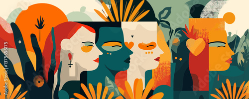 Vector illustration of baby girl sitting at the table and painting the sun in bright yellow color, retro pop art comic style.