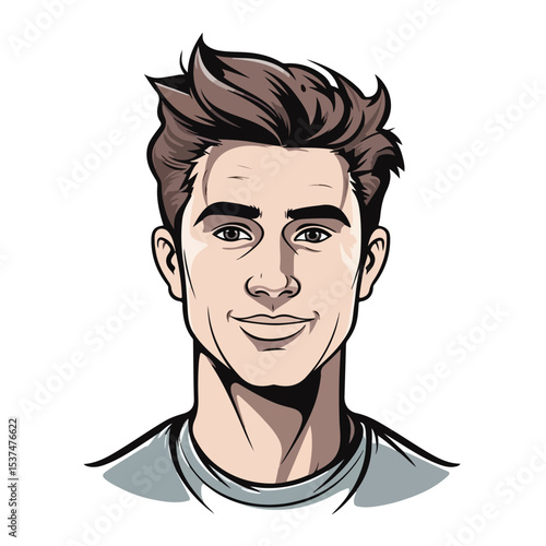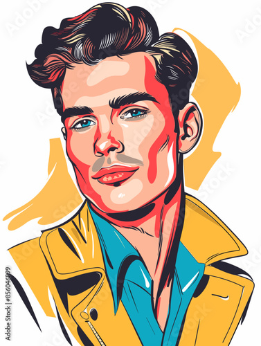 Vector illustration of laughing man, speech bubble. Happy face, positive emotion in retro pop art comic style.