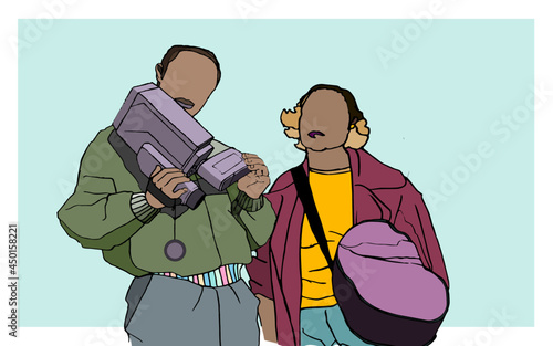 Vector illustration of pregnant woman and her husband. Loving happy couple in retro pop art comic style