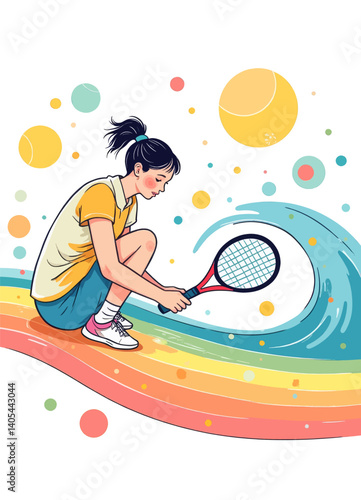 Vector illustration of pretty woman sitting on the crescent. Dreaming girl with book in retro pop art comic style.