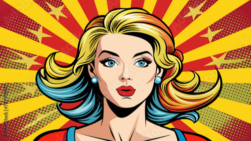 Vector illustration of beautiful girl thinking about something, thought bubble. Sad woman portrait in retro pop art comic style.