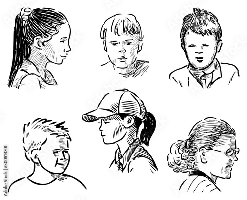 Vector illustration of group of people spectators. Listeners sitting back in first row in retro pop art comic style.