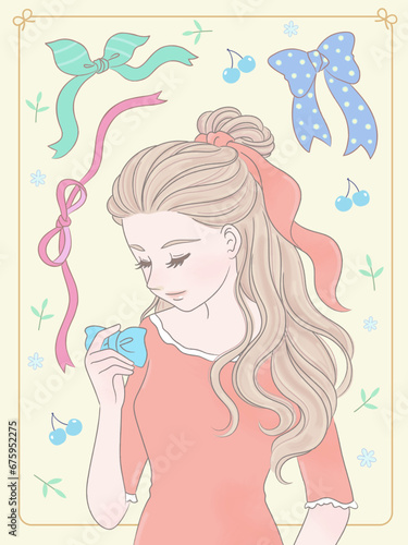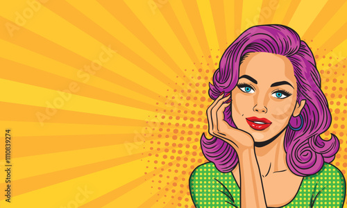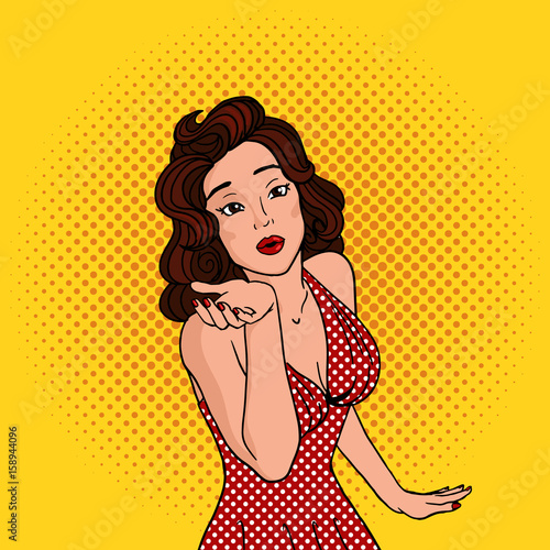Vector illustration of beautiful woman with sweet candy. Pin-up girl portrait in retro pop art comic style.
